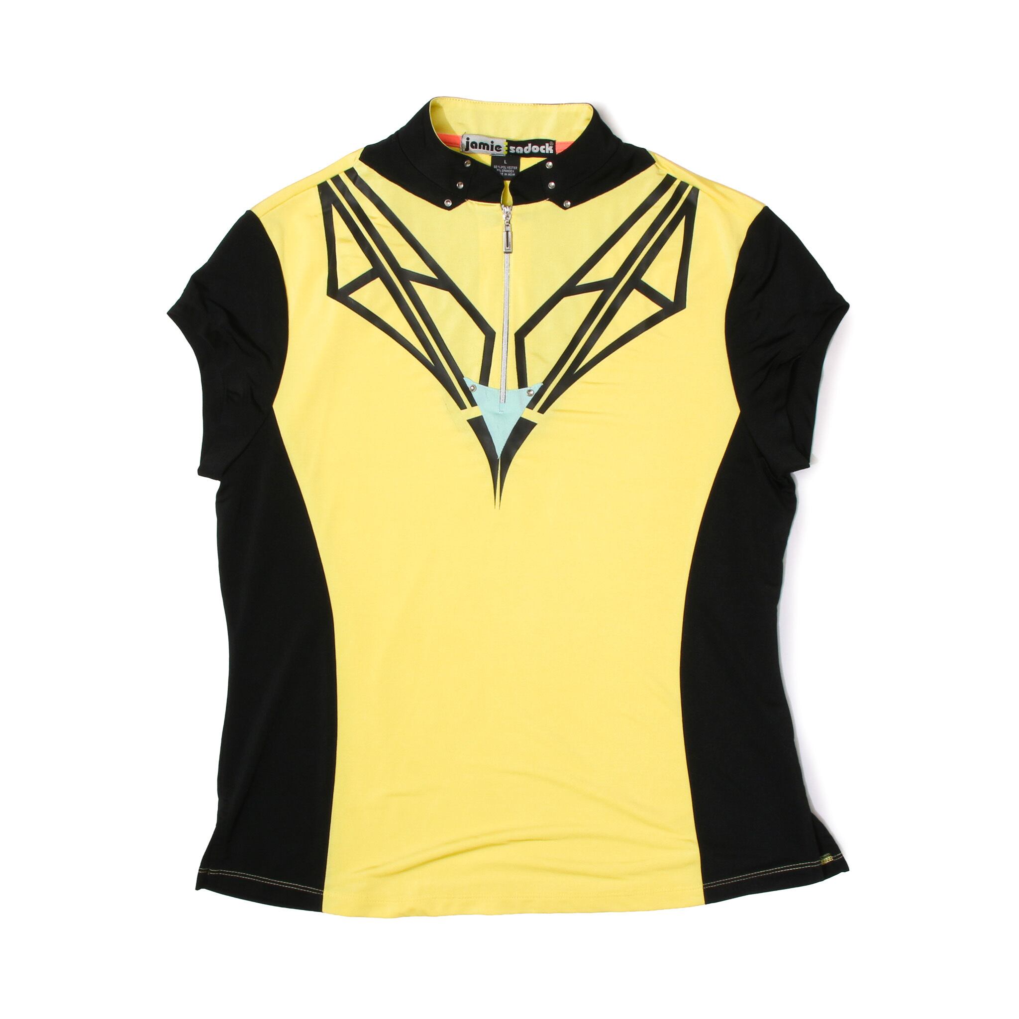 JamieSadock 90sVintage HalfZipGeometryCreamYellowNoSleeveStretchTop
