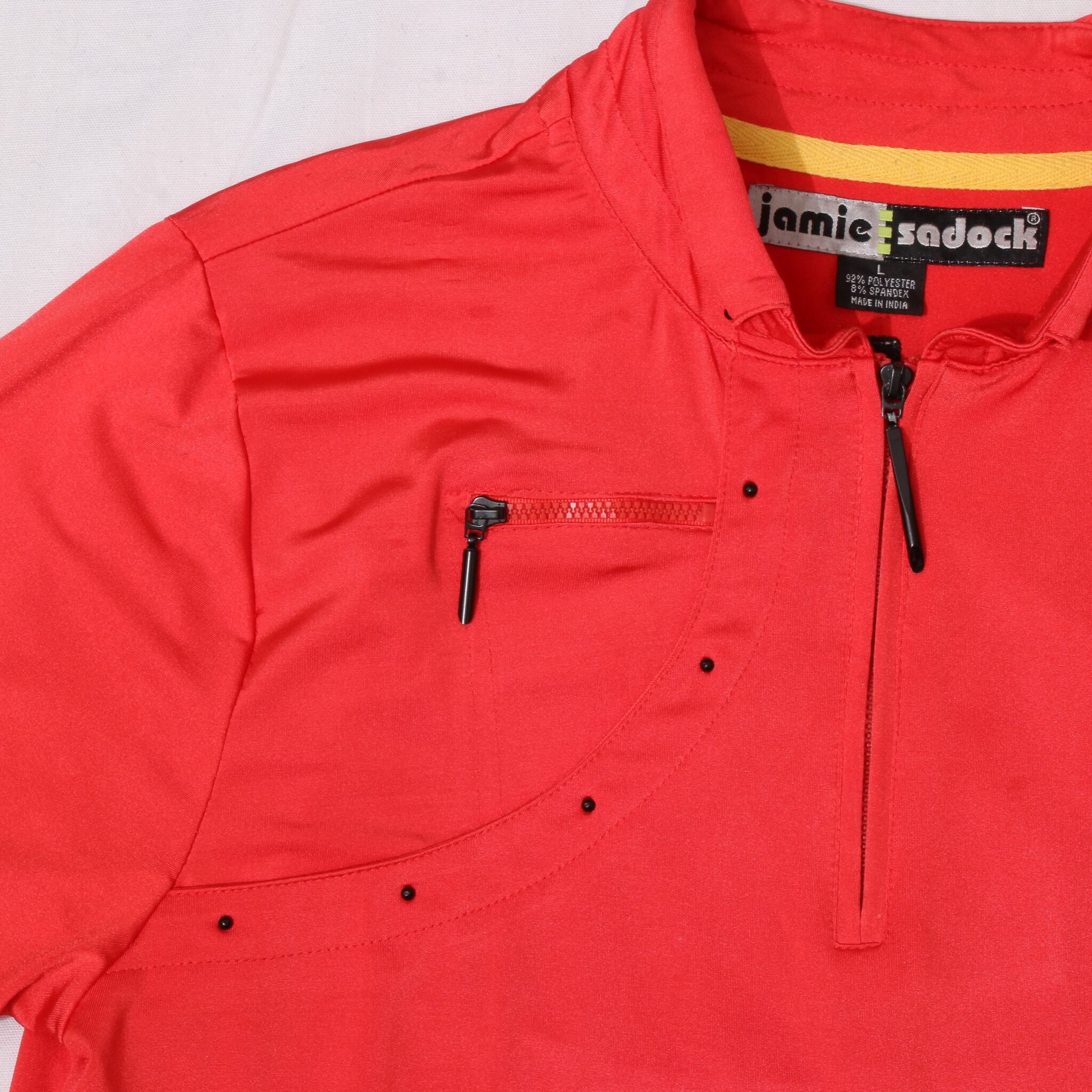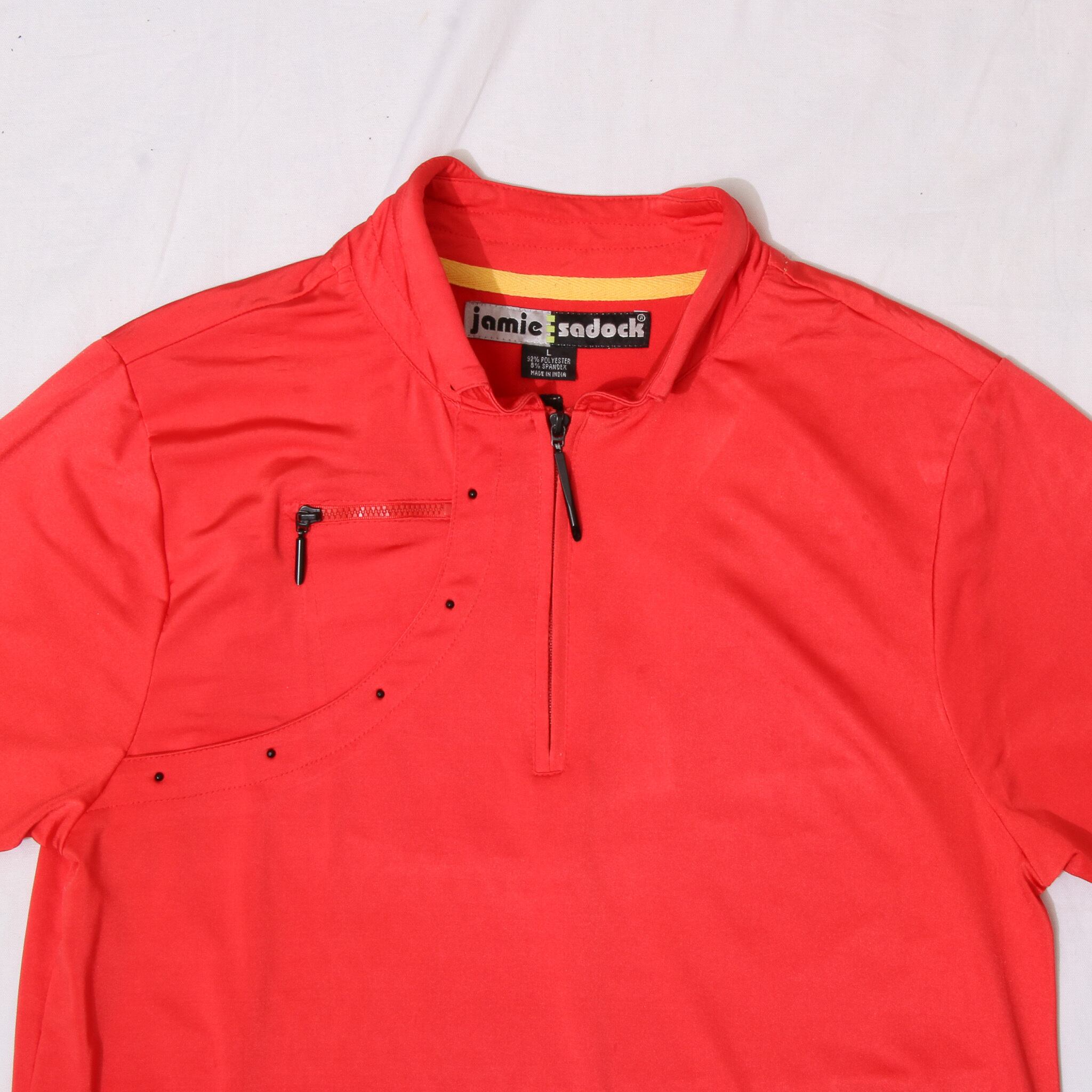 JamieSadock 90sVintage NeonRedHalfZipStretchHalfSleevePoloShirt