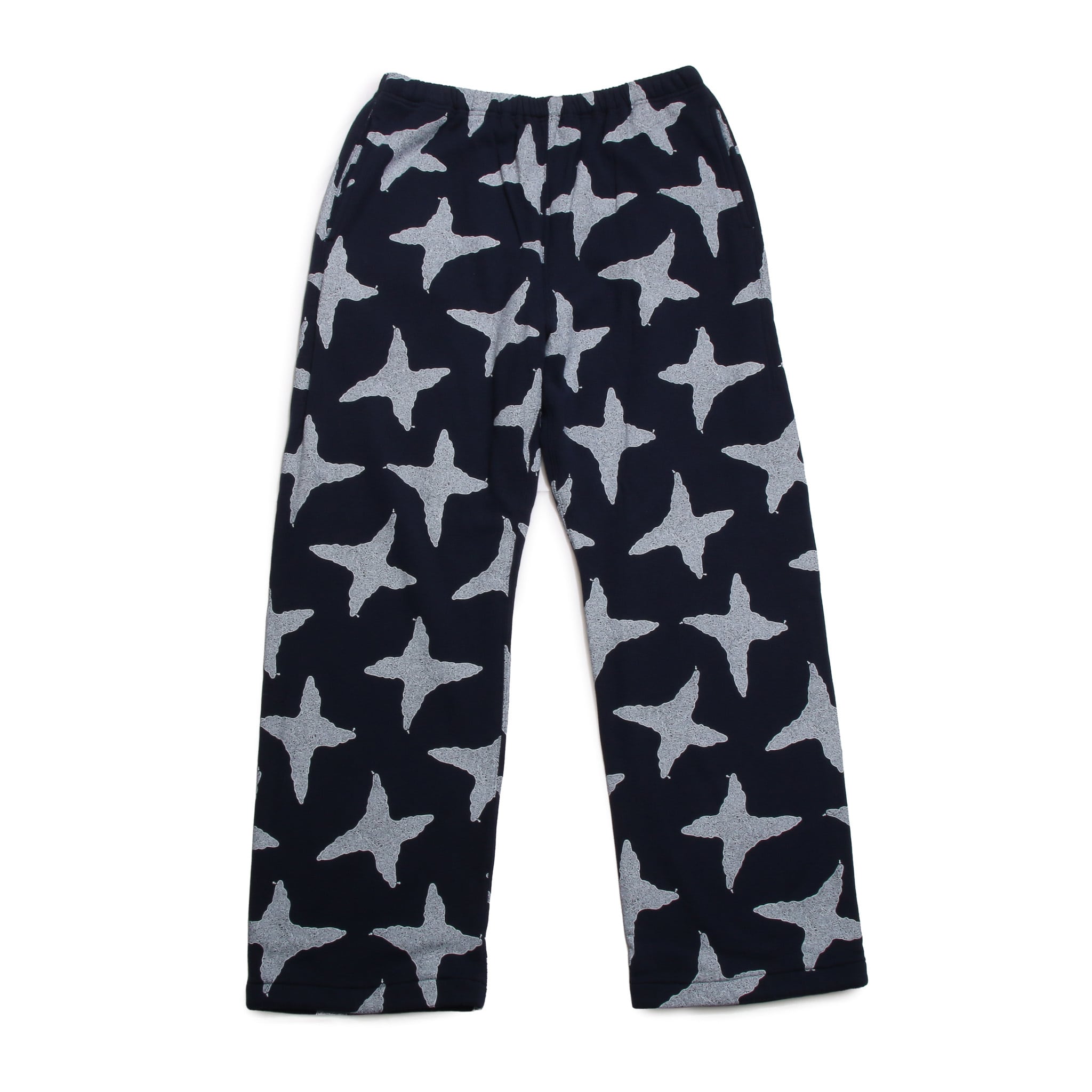 HighScreamCenter 25AW2ndデリバリー。まるで漫画のデザインのような細かい迷路柄をプリントした素材を使用したスウェットパンツ。度詰めが甘めなミニ裏毛に、裏地はワッフル生地。