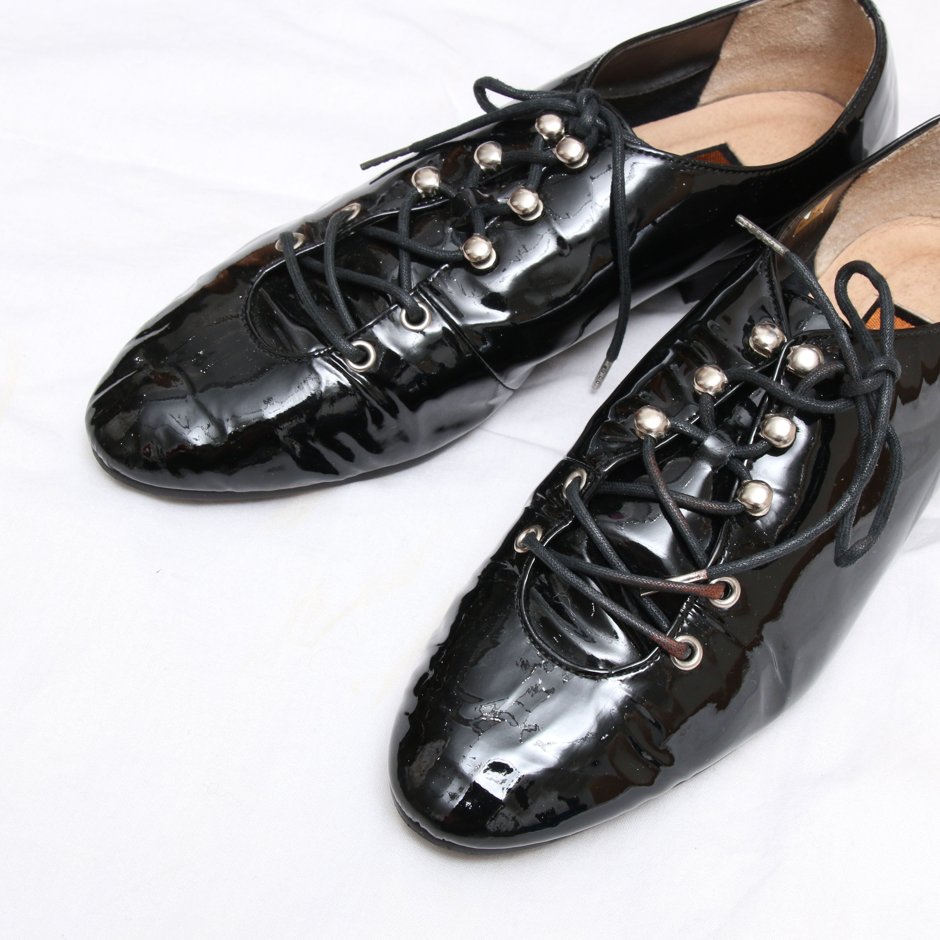 90s EnamelCoatingFlatLeatherShoes
