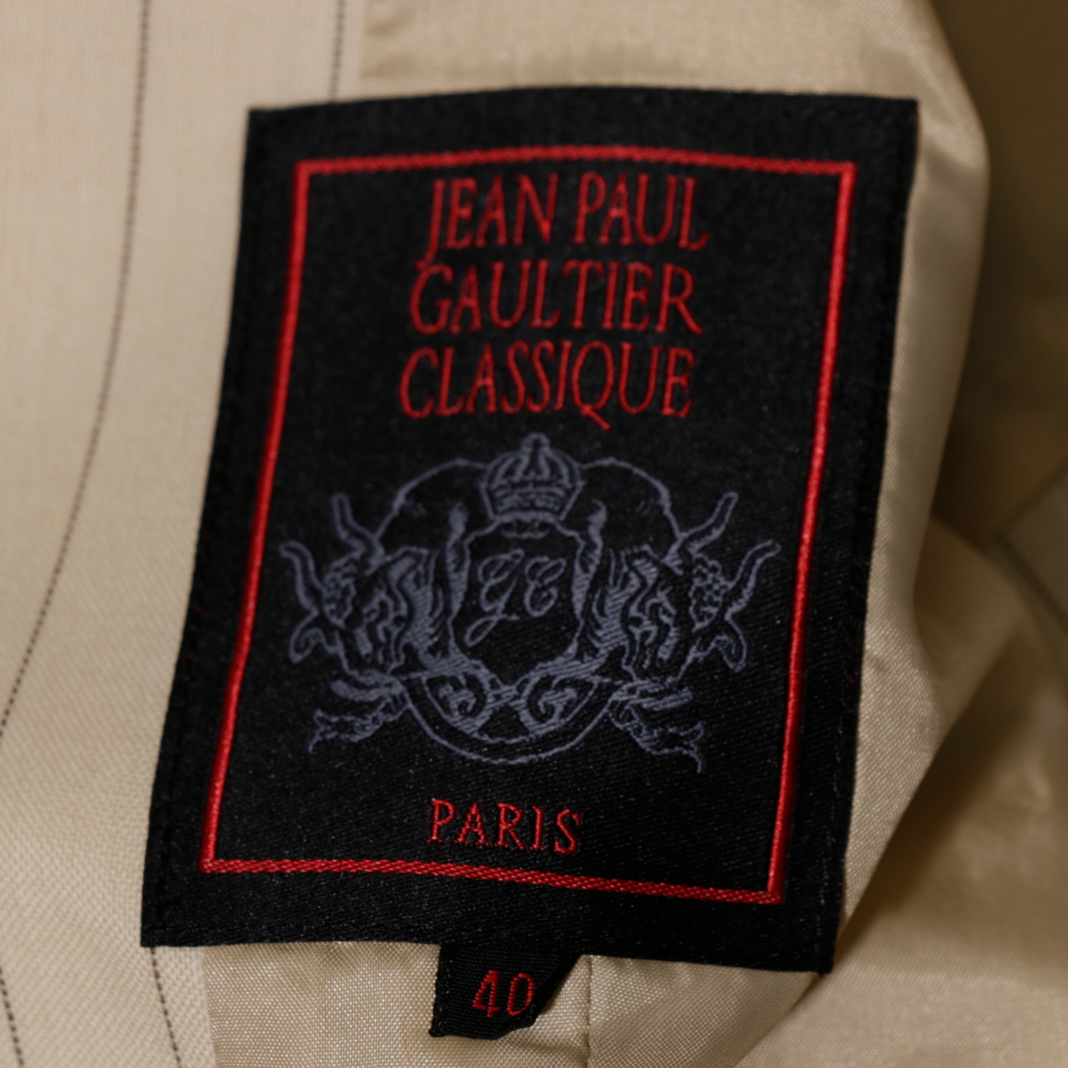 JeanPaulGAULTIER CLASSIQUEラインより、クリームカラーの薄いウール生地による清涼感とシェイプの掛かったシルエットがドレッシーなダブルセットアップです。