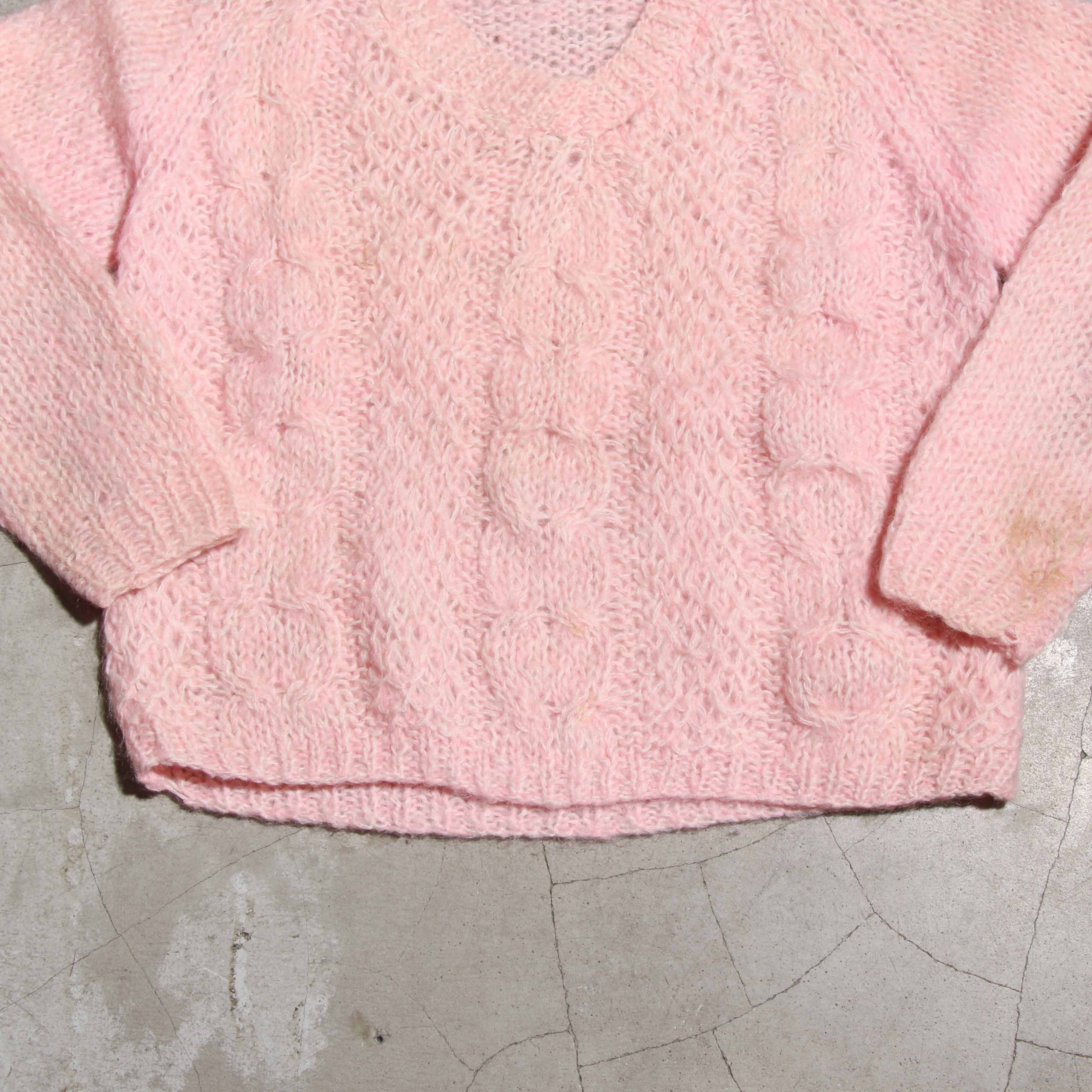 PinkWoolMohair 70sVintage LowGaugeCableKnitTops
