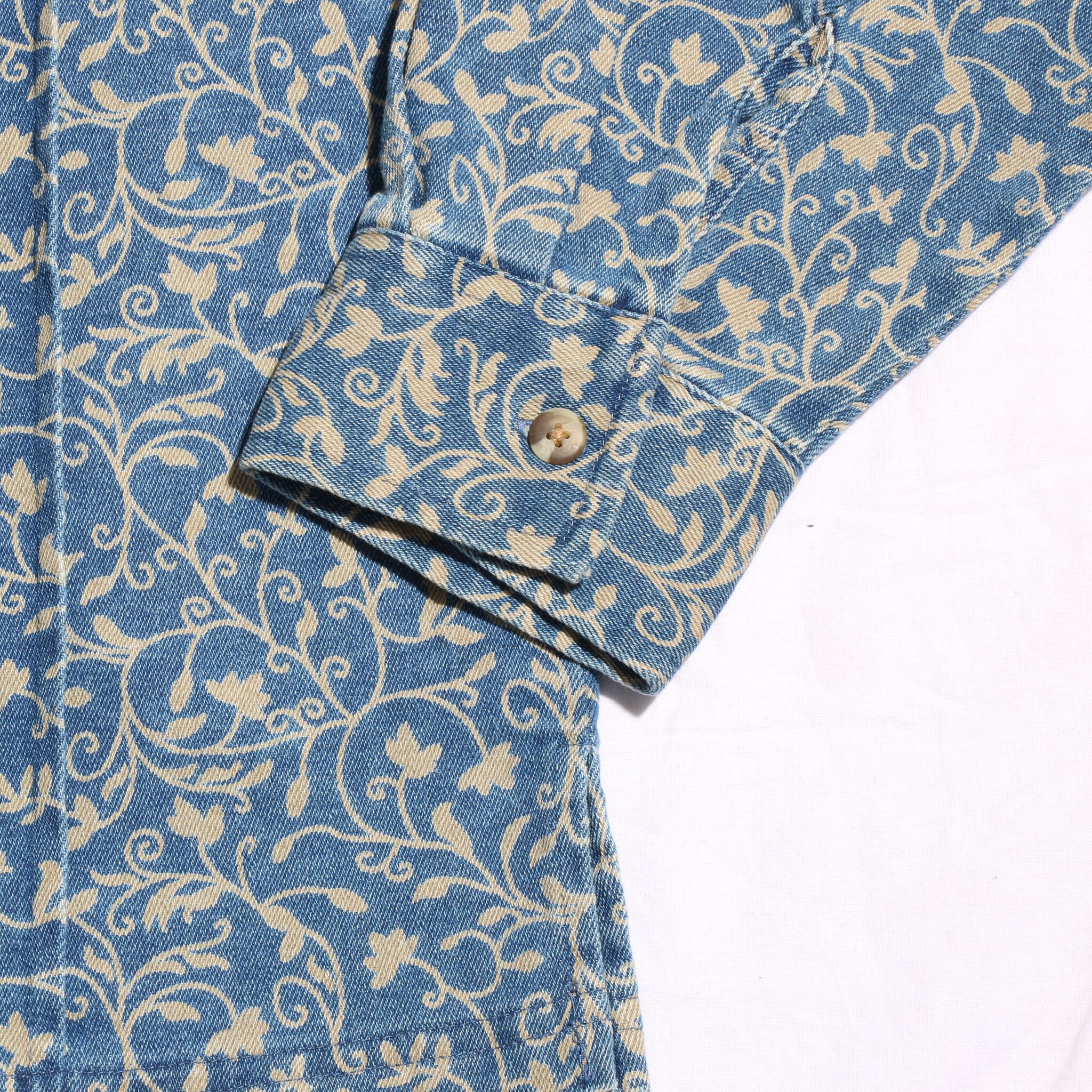 FlowerPrint PleatsDenimShirtJacket