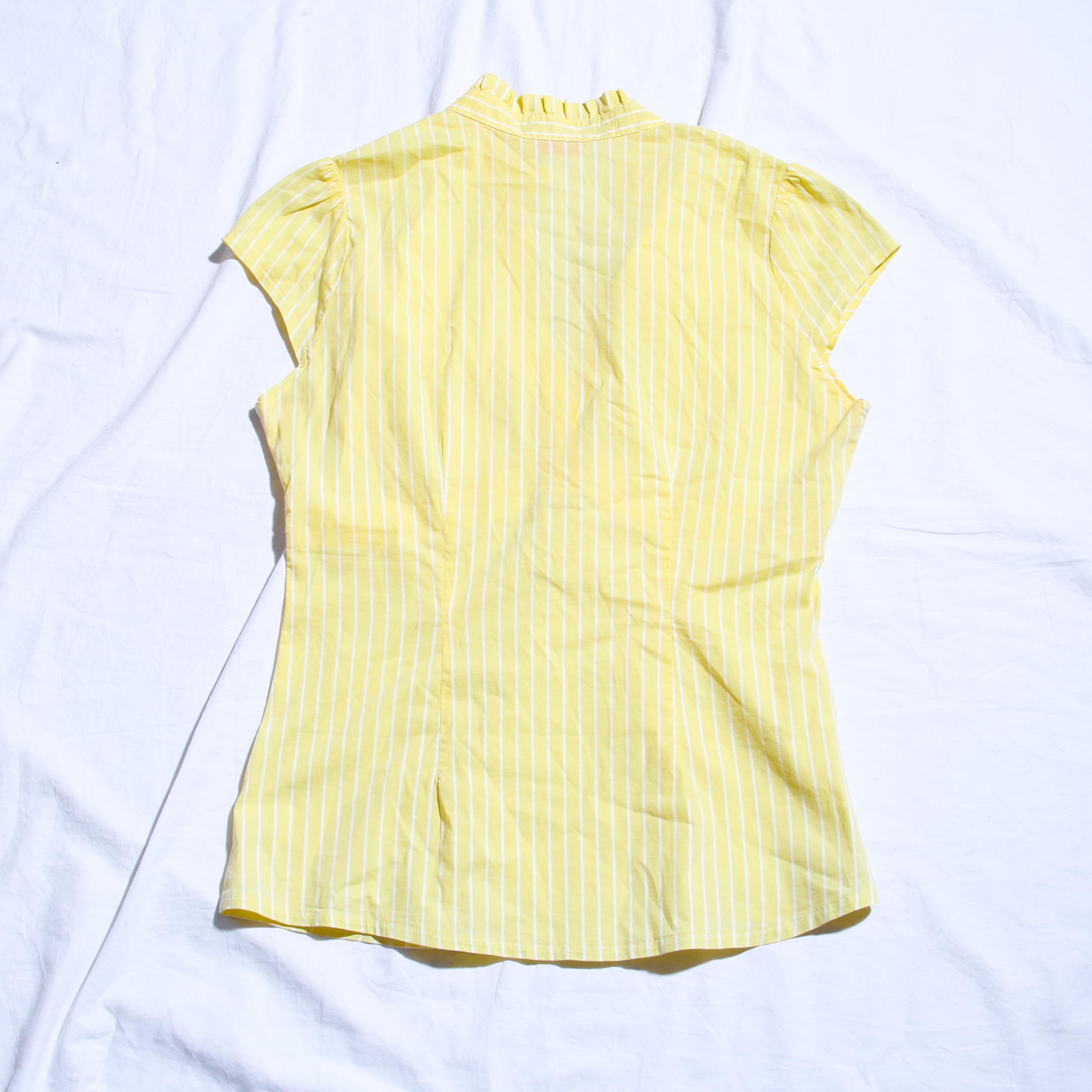 70sVintage FrillNeckStripeNoSleeveSkipperTop